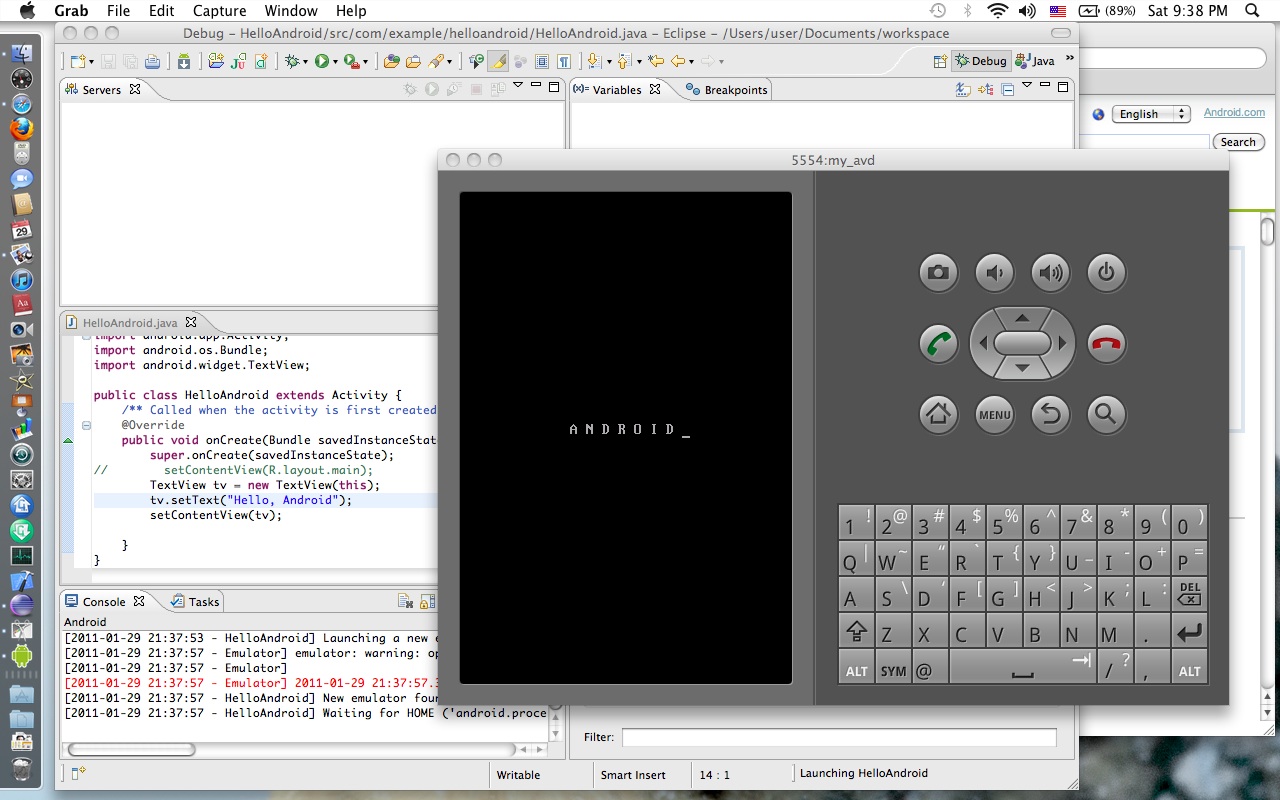 画面が変わった! やっと起動したらしい。でも”Hello,World!”は?